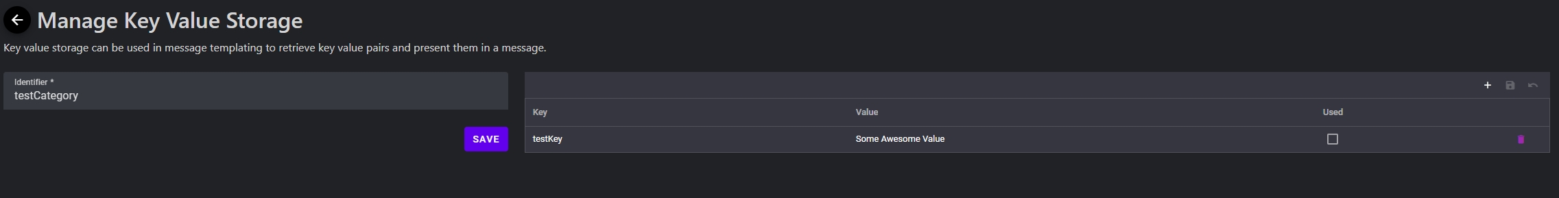 You can use Key Value Storage Message Templating to send stored values by their category or key to fit your business use-cases